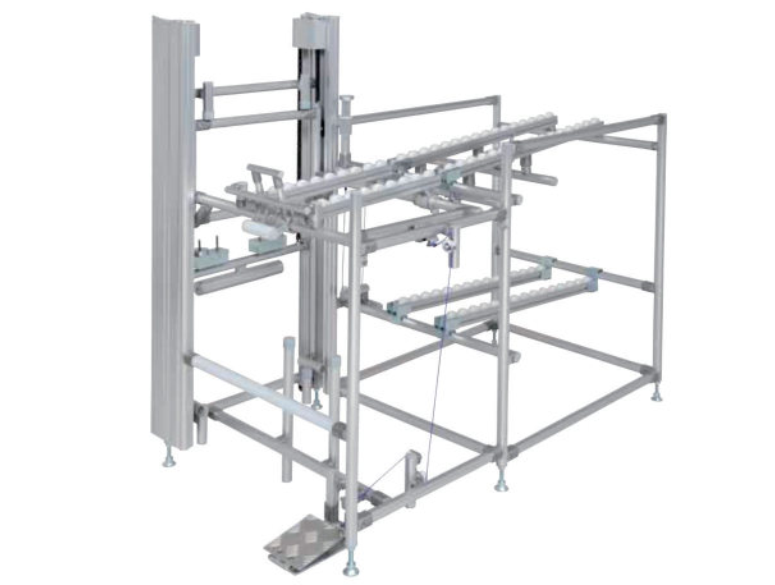 通過(guò)精極科技為此專項(xiàng)定制研發(fā)的LCIA低成本自動(dòng)化解決方案,可實(shí)現(xiàn):1)電機(jī)絲桿升降,保證物料拿取和空盤(pán)回收都在固定高度,節(jié)省員工的疲勞強(qiáng)度;2)利用滑輪、重力和彈簧,使回盤(pán)端無(wú)動(dòng)力升降,降低制作成本;3)空盤(pán)回收最近化,減少員工的走動(dòng)和轉(zhuǎn)身,達(dá)到空盤(pán)便利化。