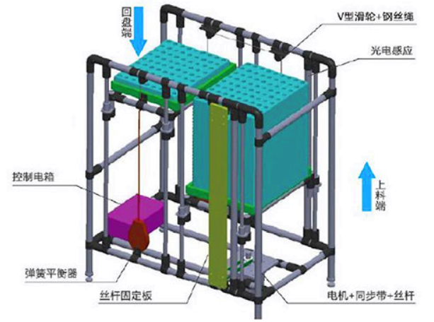 一、吸塑盤(pán)定點(diǎn)拿取回收升降機(jī)