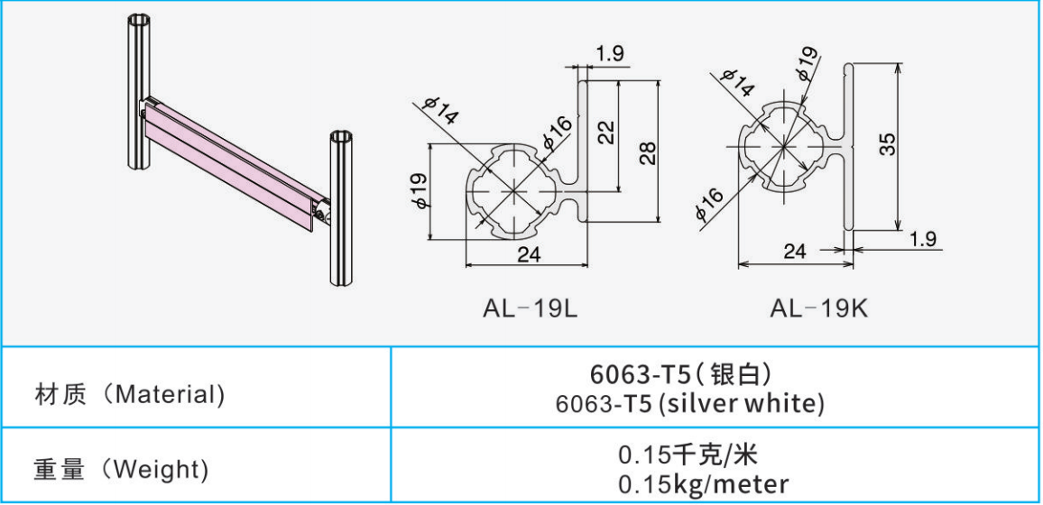 材質(zhì):6063-T5(銀白)